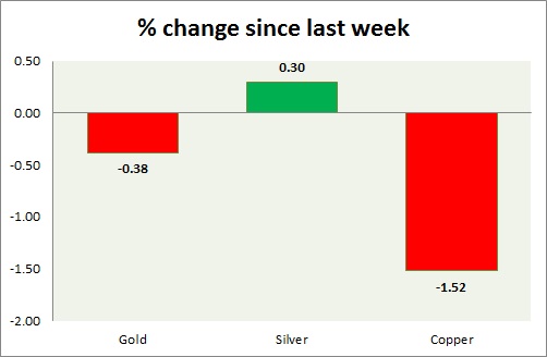 The metal pack is down today. The performance this week at a glance in chart & table -