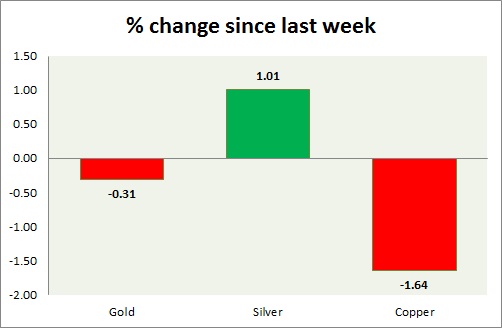The metal pack is mixed today. The performance this week at a glance in chart & table -