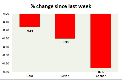The metal pack is down today. The performance this week at a glance in chart & table -