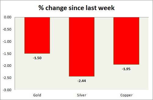 The metal pack is up today. Performance this week at a glance in chart & table -