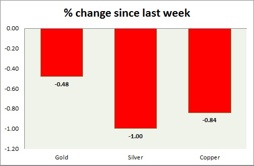The metal pack is up today. The performance this week at a glance in chart & table -