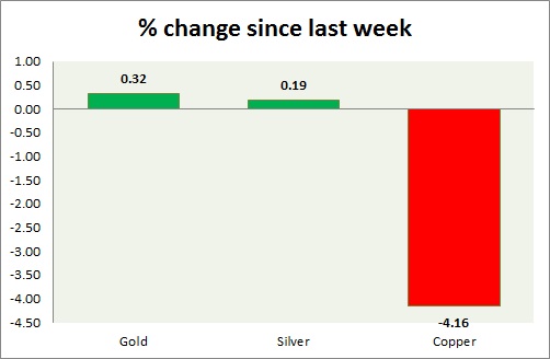 The metal pack is mixed today. The performance this week at a glance in chart & table -