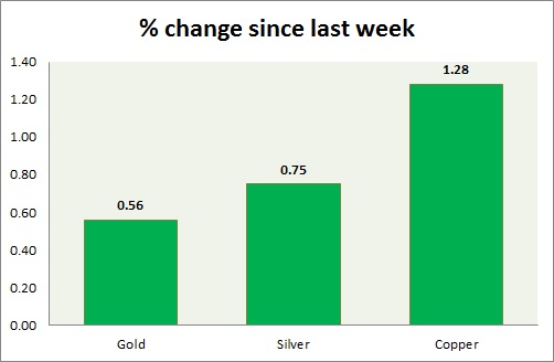 The metal pack is down today. The performance this week at a glance in chart & table -