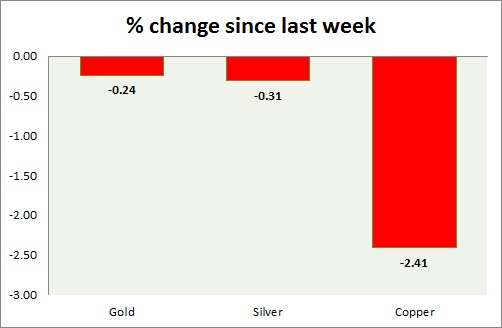 The metal pack is down today. The performance this week at a glance in chart & table -
