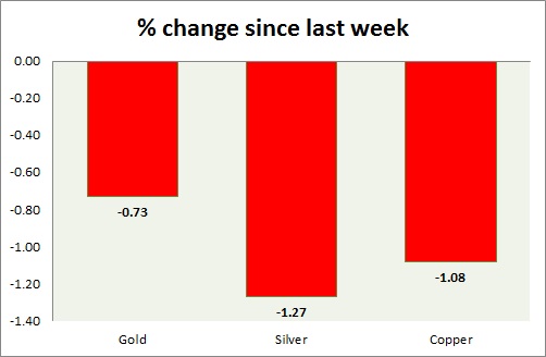 The metal pack is down today. The performance this week at a glance in chart & table -