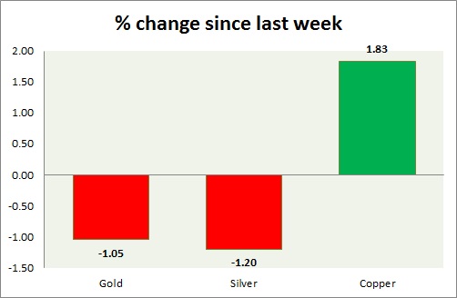 The metal pack is up today. A performance this week at a glance in chart & table -