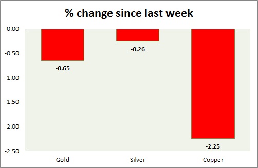 The metal pack is up today. The performance this week at a glance in chart & table -