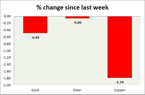 The metal pack is up today. The performance this week at a glance in chart & table -