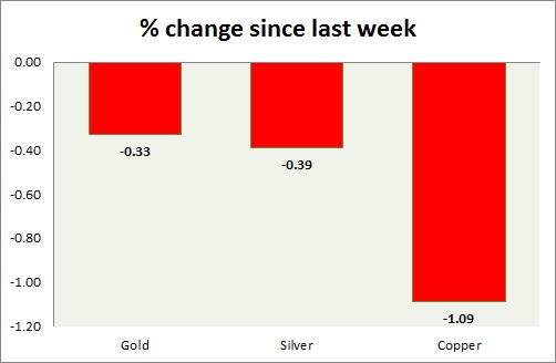 The metal pack is up today. The performance this week at a glance in chart & table -