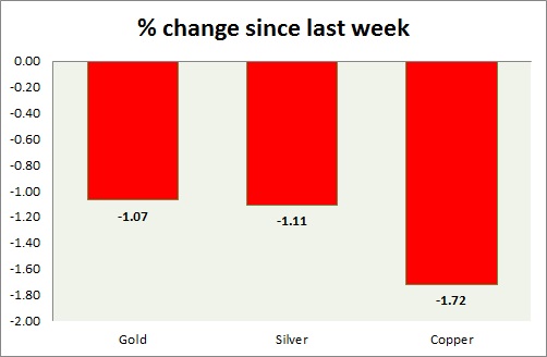The metal pack is up today. The performance this week at a glance in chart & table -