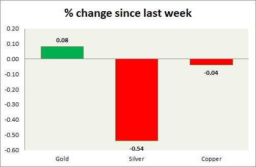 The metal pack is mixed today. The performance this week at a glance in chart & table -