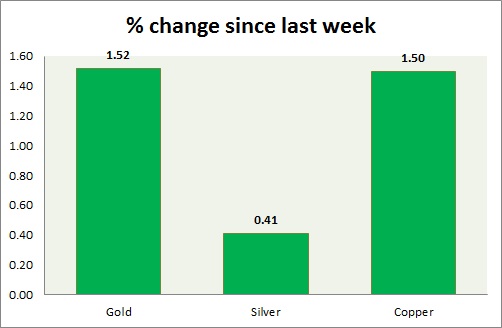 The metal pack is up today. The performance this week at a glance in chart & table -