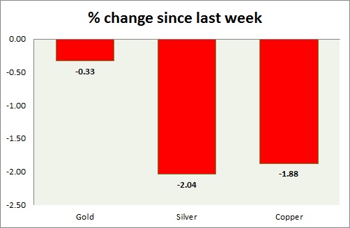 The metal pack is mixed today. The performance this week at a glance in chart & table -