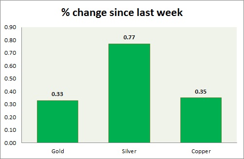 The metal pack is up today. The performance this week at a glance in chart & table -