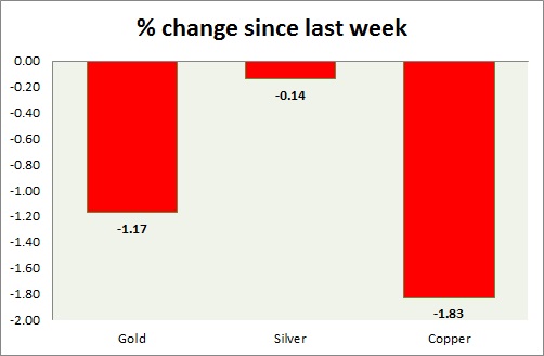 The metal pack is down today. The performance this week at a glance in chart & table -