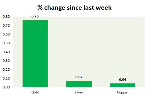 The metal pack is down today. Performance this week at a glance in chart & table -