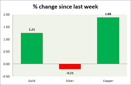 The metal pack is down today. The performance this week at a glance in the chart & table -
