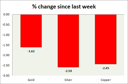 The metal pack is mixed today. The performance this week at a glance in the chart & table -
