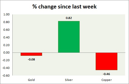 The metal pack is mixed today. The performance this week at a glance in the chart & table -