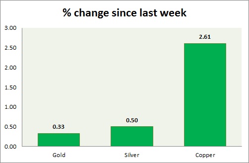 The metal pack is up today. The performance this week at a glance in the chart & table -