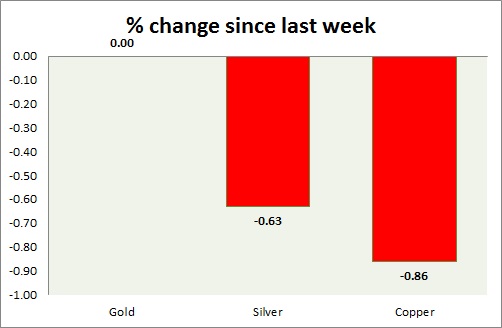 The metal pack is down today. The performance this week at a glance in the chart & table -