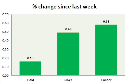 The metal pack is down today. The performance this week at a glance in the chart & table -