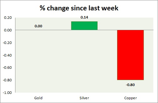 The metal pack is down today. Performance this week at a glance in chart & table -