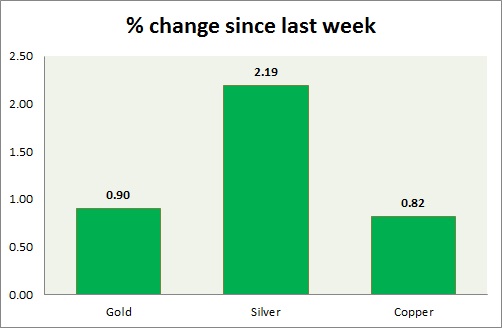 The metal pack is up today. The performance this week at a glance in the chart & table -
