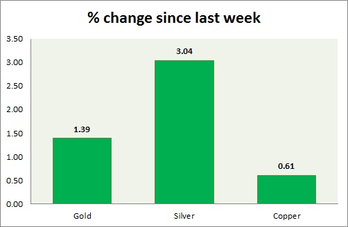 The metal pack is up today. The performance this week at a glance in the chart & table -