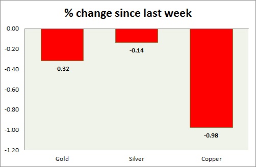The metal pack is down today. The performance this week at a glance in the chart & table -