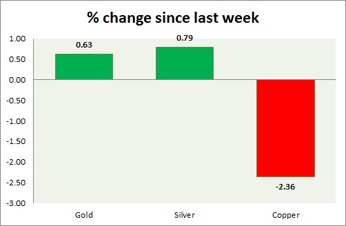 The metal pack is mixed today. The performance this week at a glance in the chart & table -