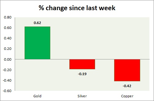 The metal pack is mixed today. The performance this week at a glance in the chart & table -