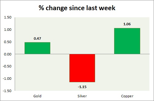 The metal pack is down today. The performance this week at a glance in the chart & table -