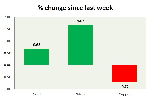 Metals are overall flat today. Performance this week at a glance in chart & table -