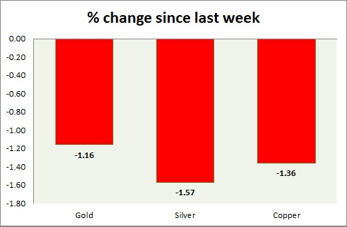 Metals are mixed today, precious is gaining while industrial falls. Performance this week at a glance in chart & table -
