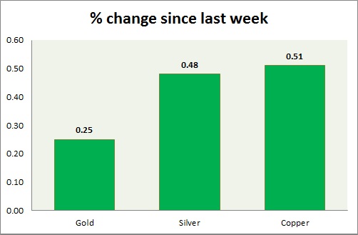 Metals performance is lacklustre despite weaker dollar. Performance this week at a glance in chart & table -
