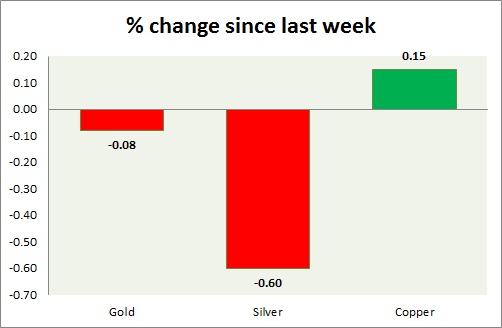 Metals are lagging despite drop in dollar. Performance this week at a glance in chart & table -