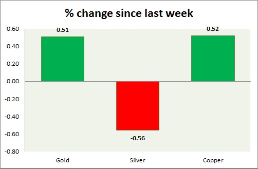 Metals are treading water in spite of weakness in Dollar. Performance this week at a glance in chart & table -