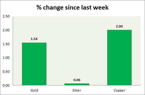 Metals are gaining today over weakness in Dollar. Performance this week at a glance in chart & table -