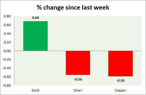 Metals are gaining today over weakness in Dollar. Performance this week at a glance in chart & table -