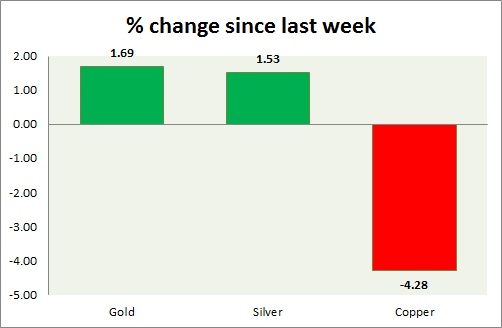 Precious pack is up post dovish FOMC, industrial lagging. Performance this week at a glance in chart & table -