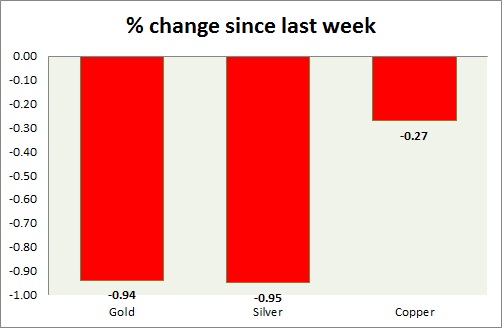 Metals are down today, as dollar maintained firmness. Performance this week at a glance in chart & table -