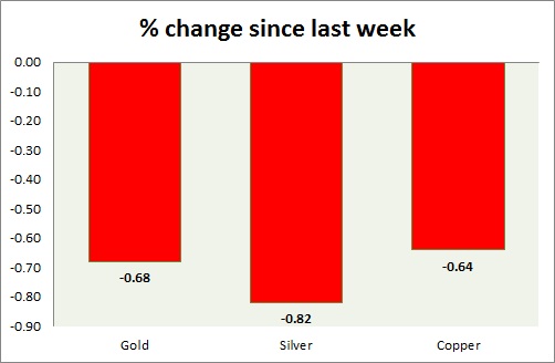 Metals are hardly moving today, with US closed for Independence Day. Performance this week at a glance in chart & table -