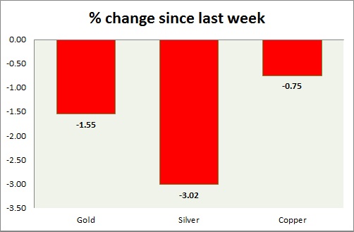 Metals are trading in red today. Performance this week at a glance in chart & table -