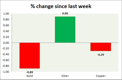 Metals are trading in red post FOMC. Performance this week at a glance in chart & table -