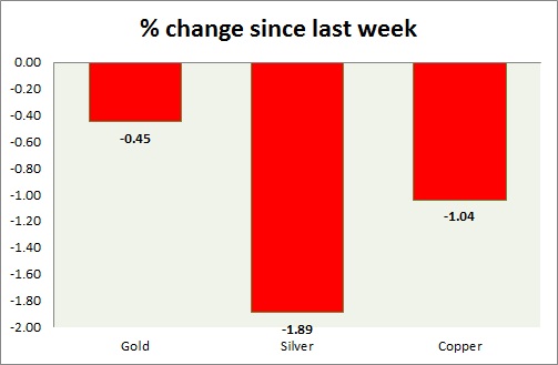 Metals are doing fairly well this week trying hard to ground against dollar. Performance this week at a glance in chart & table -