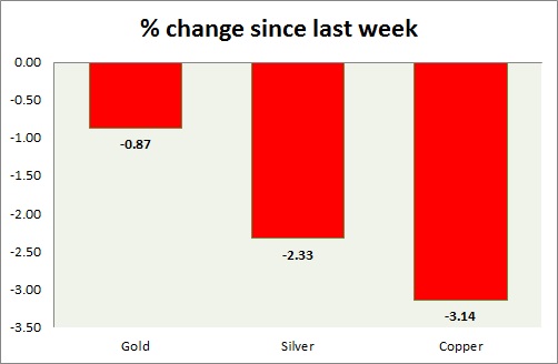 The metal pack is mixed today. Performance this week at a glance in chart & table -