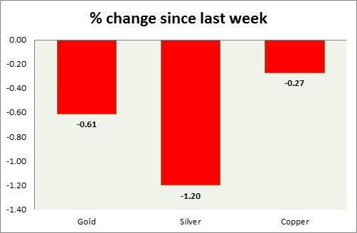 The metal pack is up today. Performance this week at a glance in chart & table -