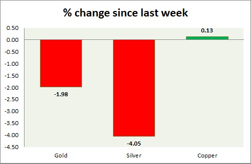 Metal pack is mixed today, industrial is up, while precious is down. Performance this week at a glance in chart & table -