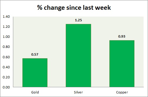 The metal pack is down today. Performance this week at a glance in chart & table -